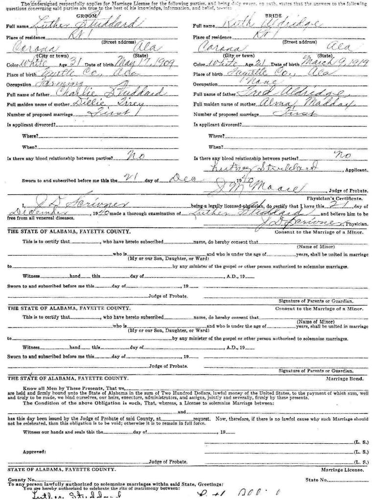 STUDDARD, Luther - Ruth ALDRIDGE - 21 Dec 1940![]()